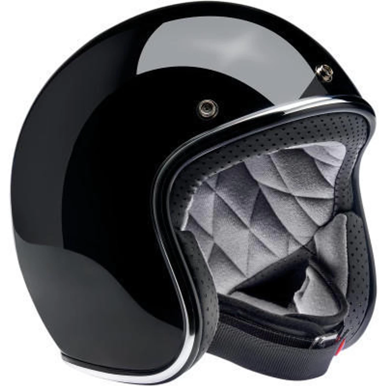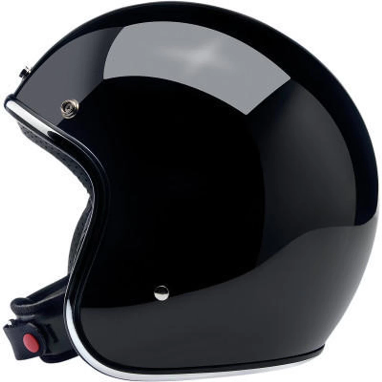 Biltwell’s latest Bonanza style helmet is ideal for the rider who longs to feel the wind in their face. It features an injection-molded ABS outer shell. The inner shell of the helmet is hand-sewn with expanded polystyrene and comes a removable, brushed Lycra liner plus contrasting diamond-stitched, quilted, open-foam padding. Also included is a rugged, plated steel D-ring neck strap with an adjustment strap end retainer.