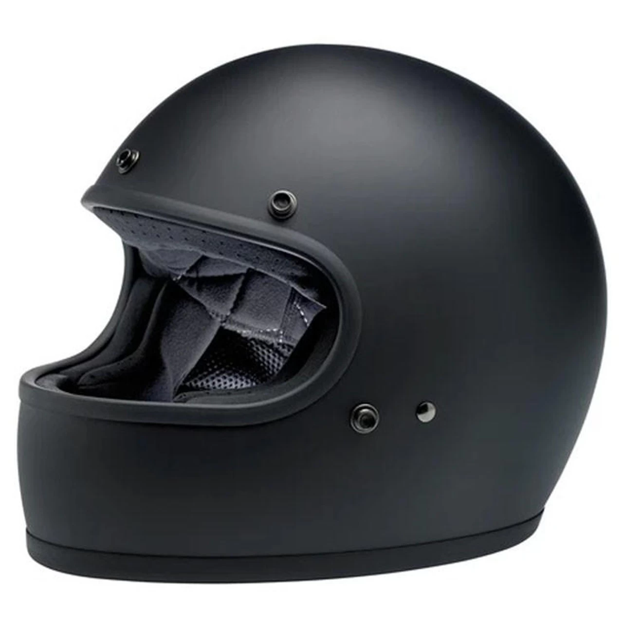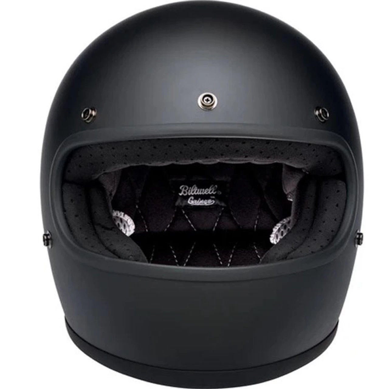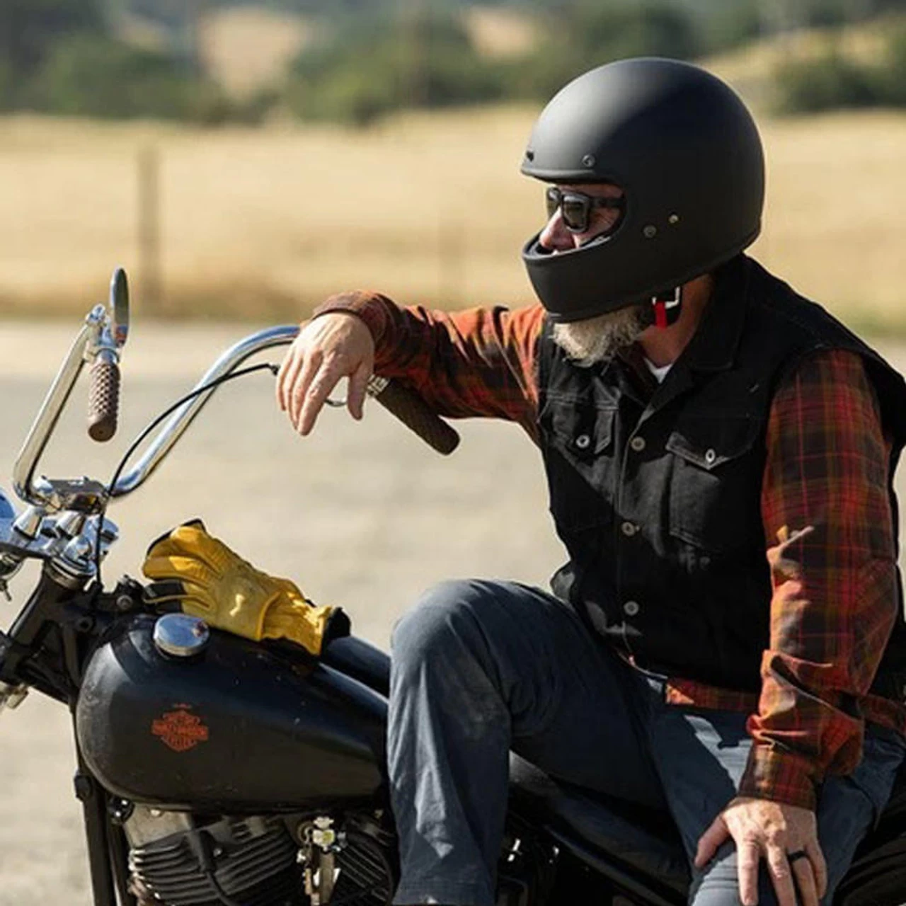 The Gringo is a full face DOT approved motorcycle helmet. It has an ABS outer shell and a shock absorbing EPS inner shell for protection. This helmet also has a hand-sewn diamond stitched liner and a BioFoam chin pad to keep riders comfortable. The Gringo helmets vintage look goes well with the Biltwell bubble shield or the Biltwell Blast shield. It can also be worn with goggles or glasses. This full face helmet does allow a good amount of air through the chin and eye port so if you are use to an open face feel, but want full face protection the Gringo is a good choice.