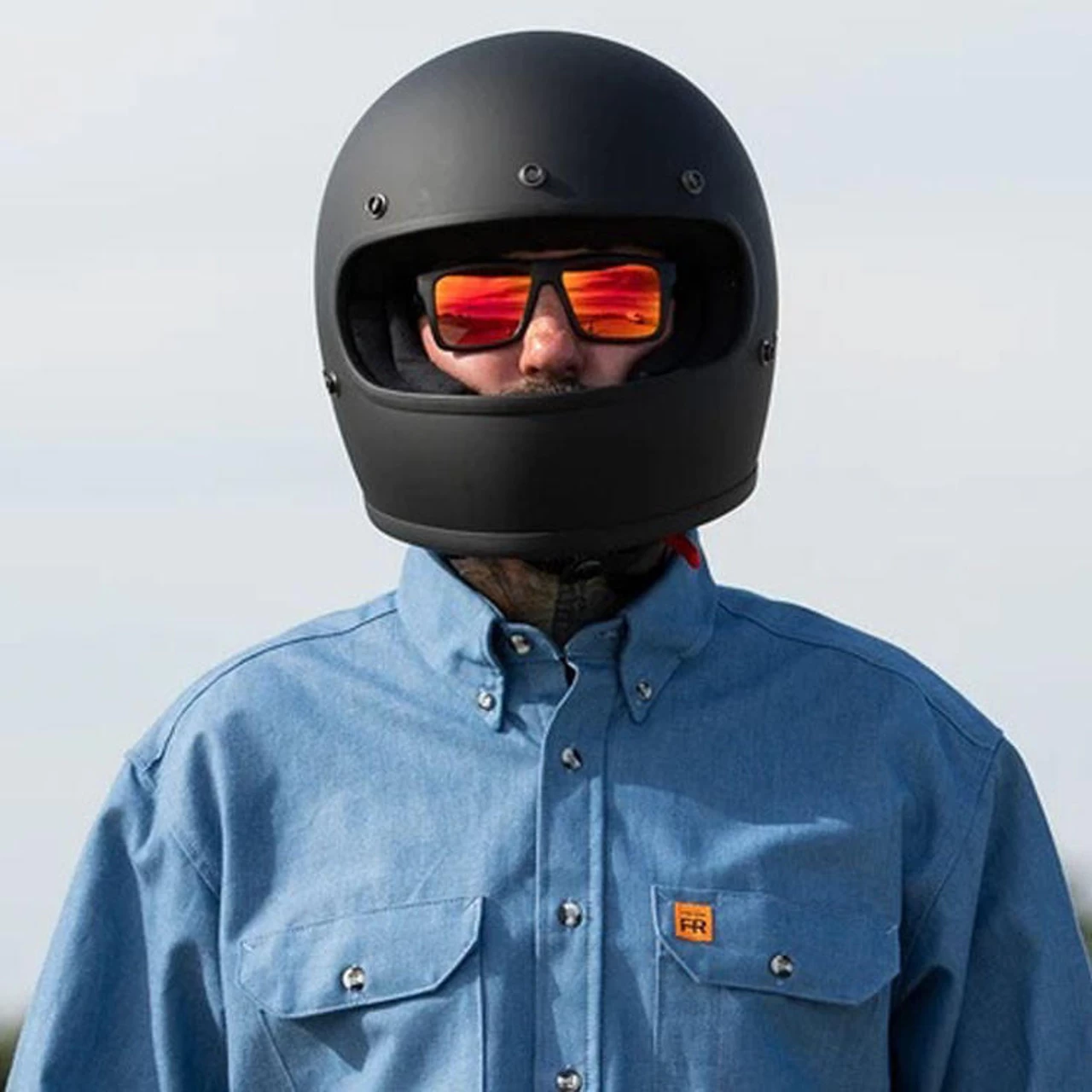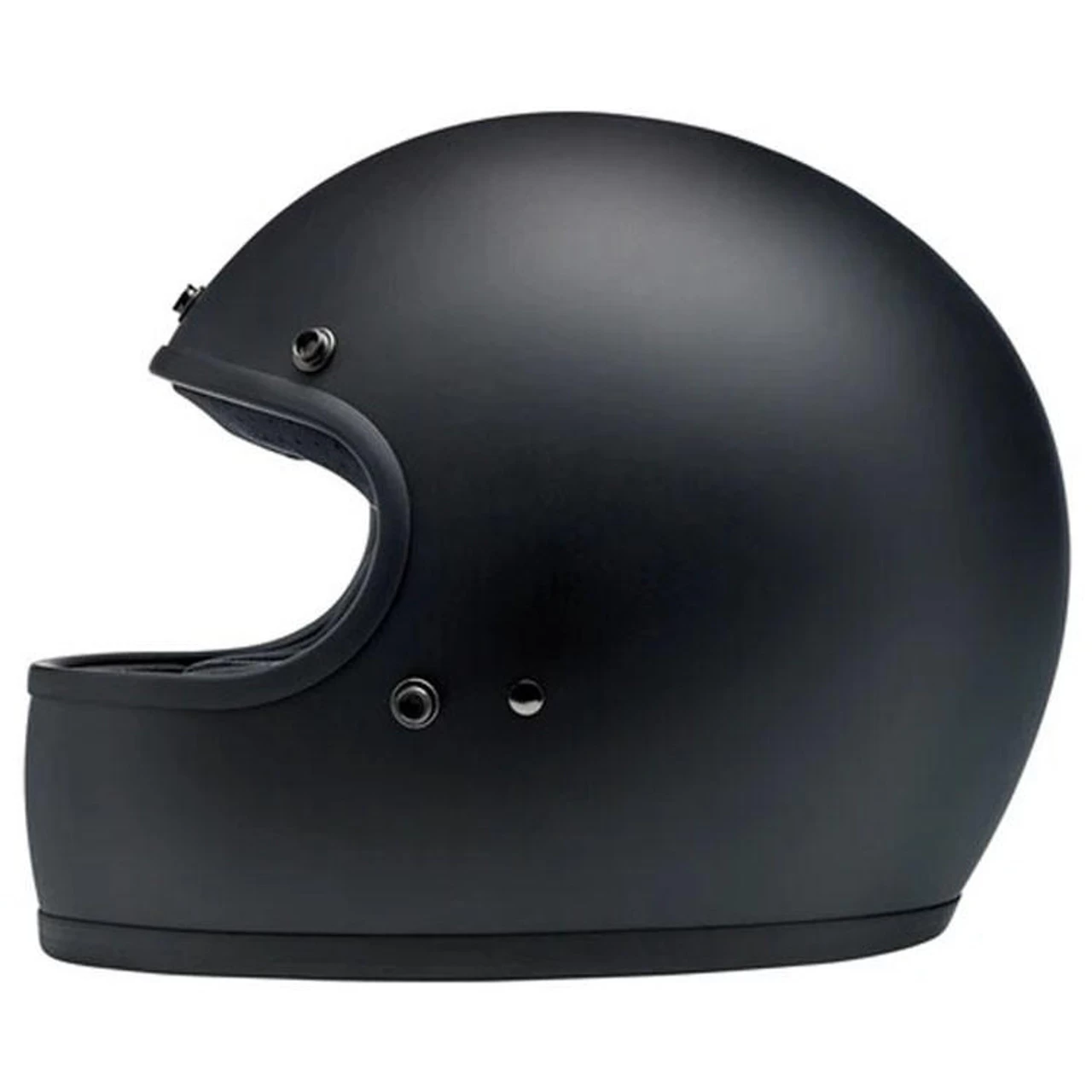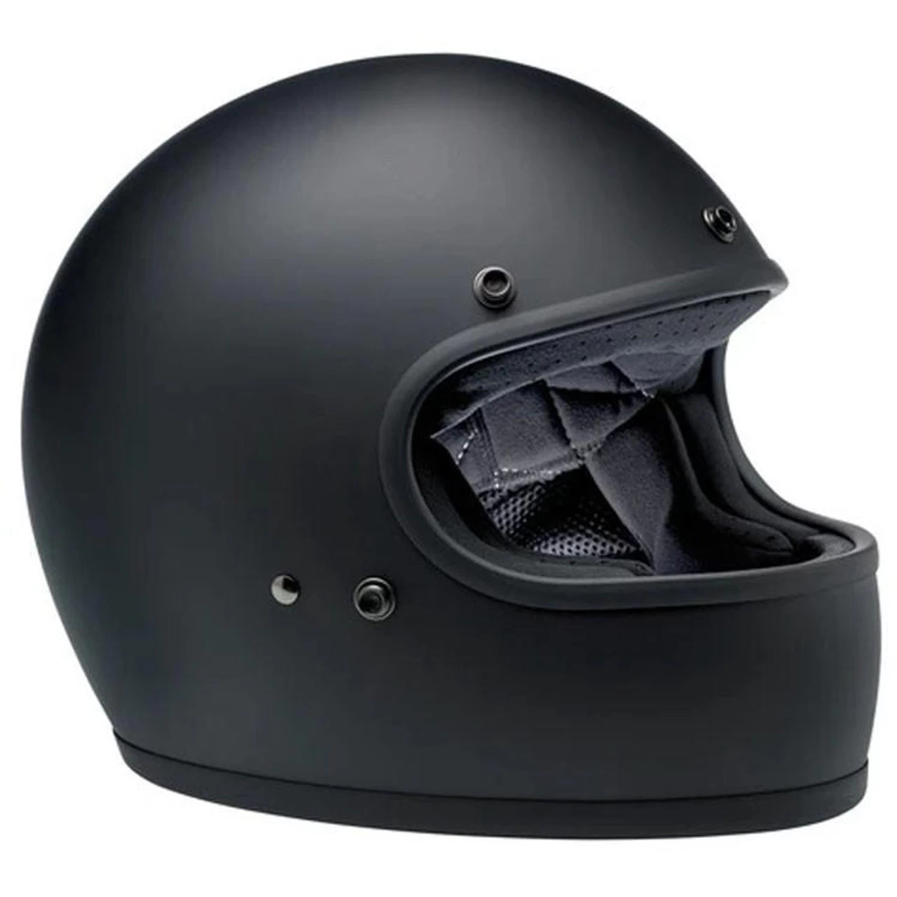 The Gringo is a full face DOT approved motorcycle helmet. It has an ABS outer shell and a shock absorbing EPS inner shell for protection. This helmet also has a hand-sewn diamond stitched liner and a BioFoam chin pad to keep riders comfortable. The Gringo helmets vintage look goes well with the Biltwell bubble shield or the Biltwell Blast shield. It can also be worn with goggles or glasses. This full face helmet does allow a good amount of air through the chin and eye port so if you are use to an open face feel, but want full face protection the Gringo is a good choice.