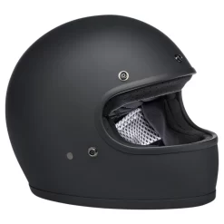 The Biltwell Lane Splitter Helmet has an aggressive style built for those gnarley riders. From hanging wheelies to splitting lanes on the freeway this motorcycle helmet will protect and outlast. The Lane Splitter is crafted with an ABS outer shell and a shock-absorbing EPS inner shell for protection. It is comfortable and light-weight with hand-stitched interior padding, cheek pads, and a BioFoam chin bar. This full face helmet also has great ventilation with vents in the chin bar and an outlet in the back to let air escape. The Biltwell Lane Splitter Helmet comes with a clear shield that has clear optics and the ability to open quickly and close securely. If you want to put a communication system in the helmet it does have mesh pockets in the ear-recess.