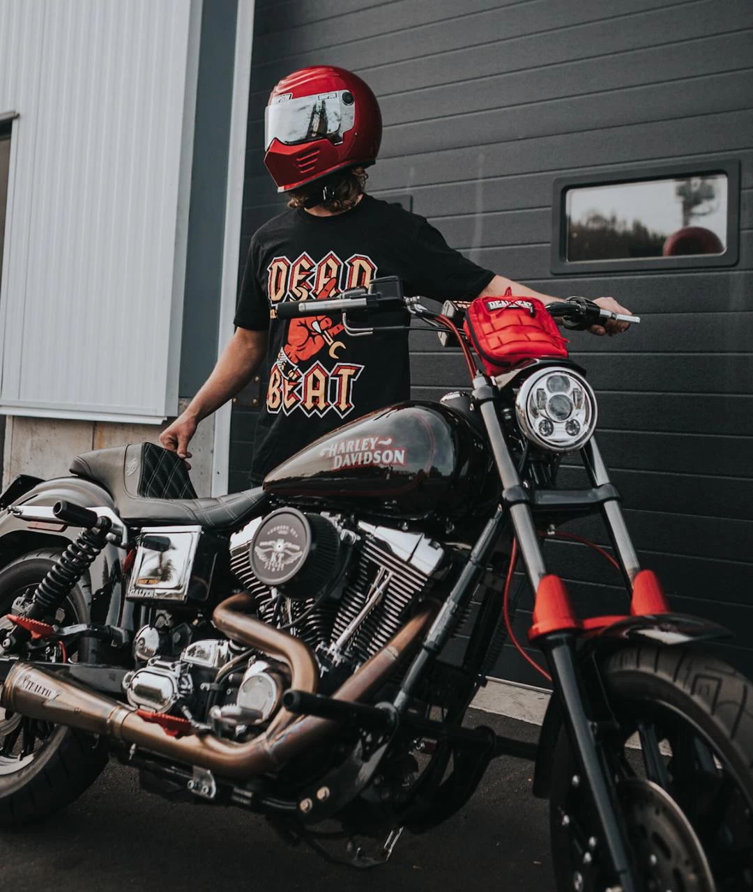 Unleash your dark side with the Deadbeat Customs Horns T-Shirt! Not only is this T-Shirt super comfortable with a rad print but it’s supporting our garage built company. You wont find this anywhere but here!
