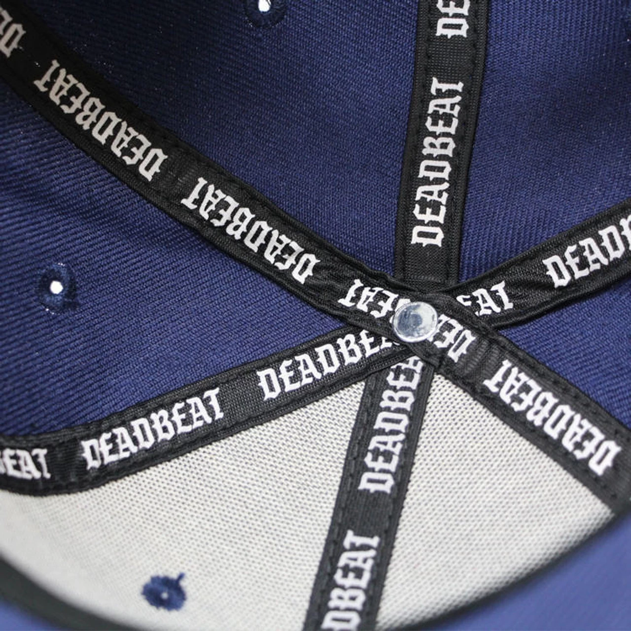 Front sewn on patch, matching under brim, Deadbeat taping and hang tab. We designed every feature of this snapback hat to match.