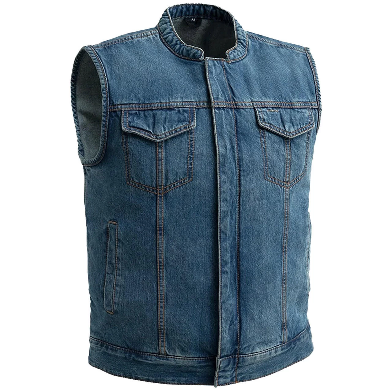 Get ready to wreak some havoc with this Club Style vest from First Mfg.! Designed with Washed Blue Denim, the Havoc Vest is built to provide extra comfort with all specialized motorcycle features. It is an affordable option for hot weather option. This vest features one conceal carry pocket outside the center front zipper, giving you easy access without opening the vest. Available in sizes S-5XL.