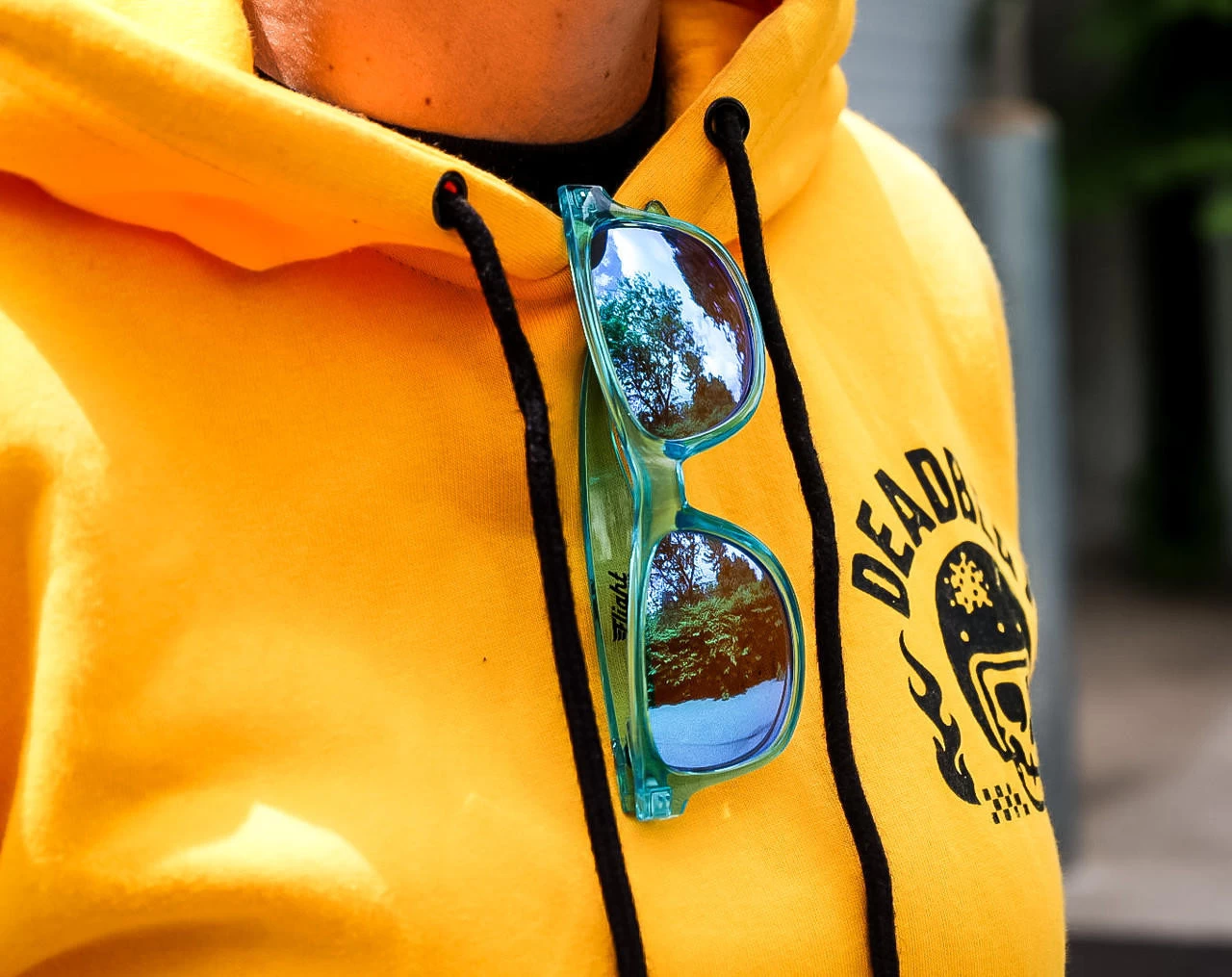Our Elwood shades are the perfect finishing touch for any camera-ready look, they bear a strong resemblance to the shades worn by the legendary badasses of the silver screen. This style features a super cool blue-on-blue combination: crystal blue frames and a pair of bold blue lenses. You’ll be sure to get some double-takes when you’re wearing a pair of Elwood shades, only from Flight Eyewear.