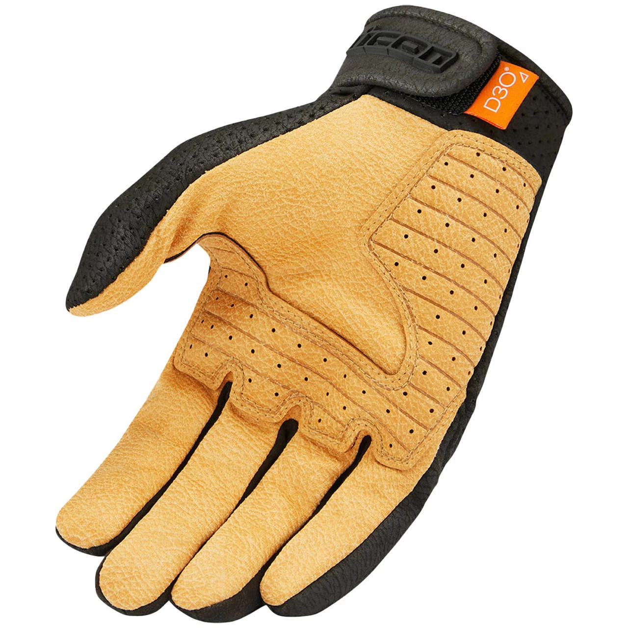 The Men’s Airform™ Gloves by Icon are designed with summer-weight Ax® Laredo synthetic chassis and palm overlays. There are perforations inside the chassis which heighten airflow and riding comfort, and there are secure hook-and-loop cuff closures to guarantee a secure fit every time. Available in sizes S-3XL.