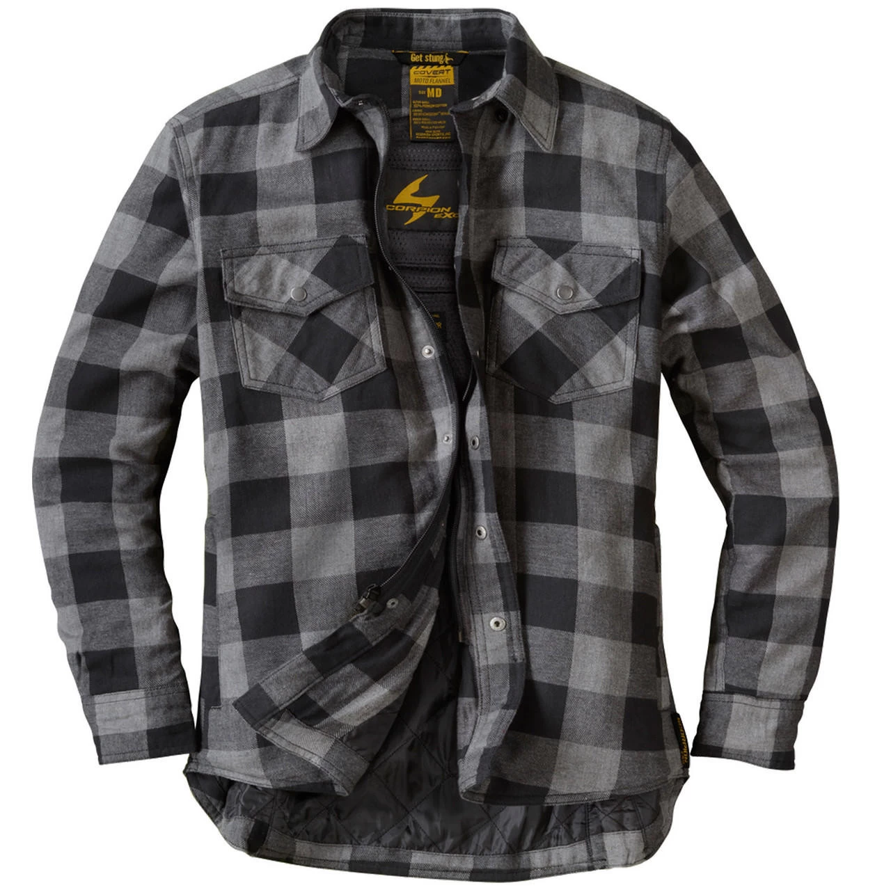ScorpionEXO has taken your favorite flannel shirt and made it better! The Covert Flannel Shirt is fully lined with 165G DuPont™ Kevlar® lining aramid fiber, which is engineered to resist tear and abrasion. Mesh armor pockets at the elbows, shoulders, and back enable you to add protection from impact. They are designed to fit optional CE rated Safe-Tech level 1 or level 2 armor, or optional Sas-Tec level 1 Flex armor. Cotton/Polyester flannel outer material and a quilted polyester lining give you that classic flannel look, on and off the bike. There are four pockets total: two are zippered hand warmer pockets, two are chest pockets and there is one internal pocket. The flannel also features a zippered hip gusset expansion as well as a YKK® Main zipper. Being protected has never looked this good! 1-Year Warranty, available in sizes XS-2XL.