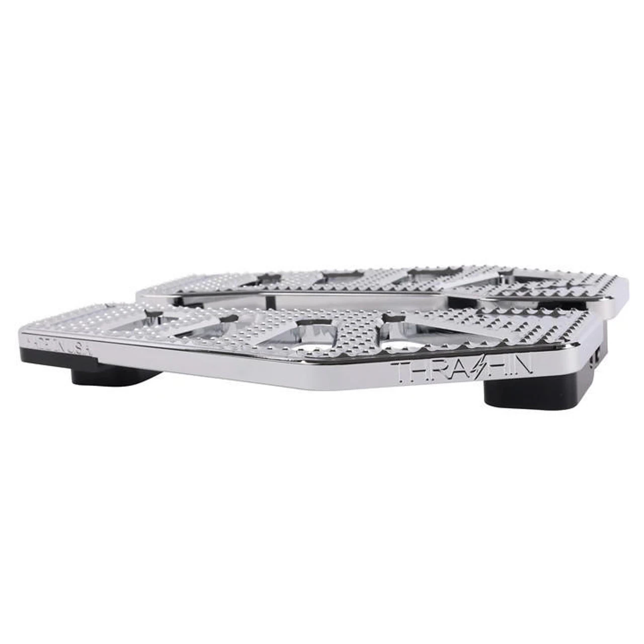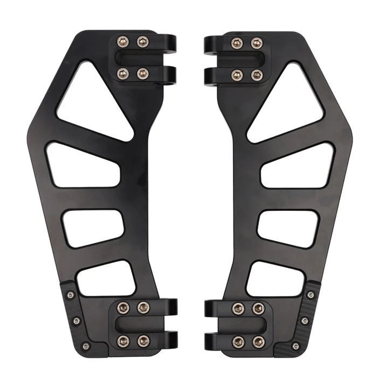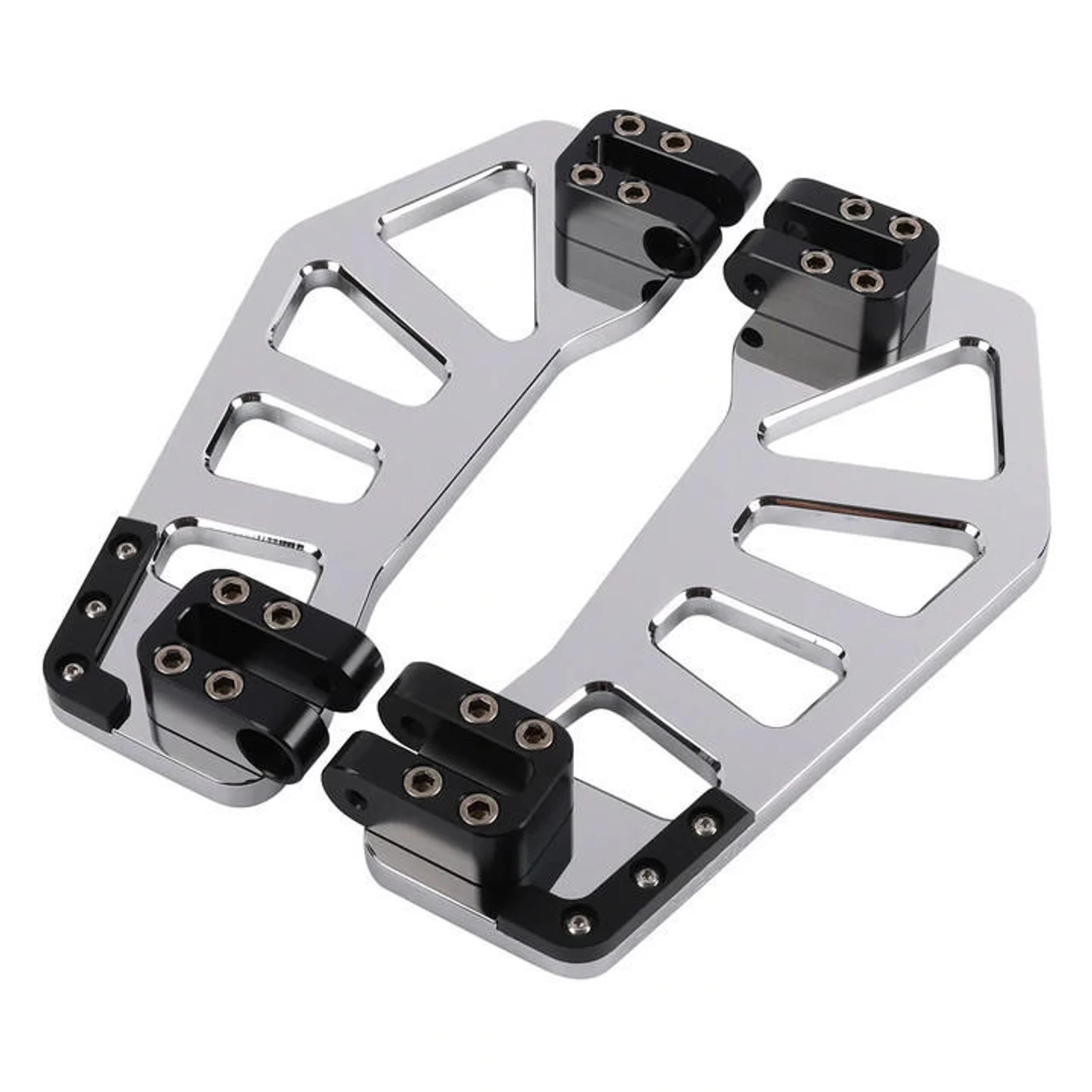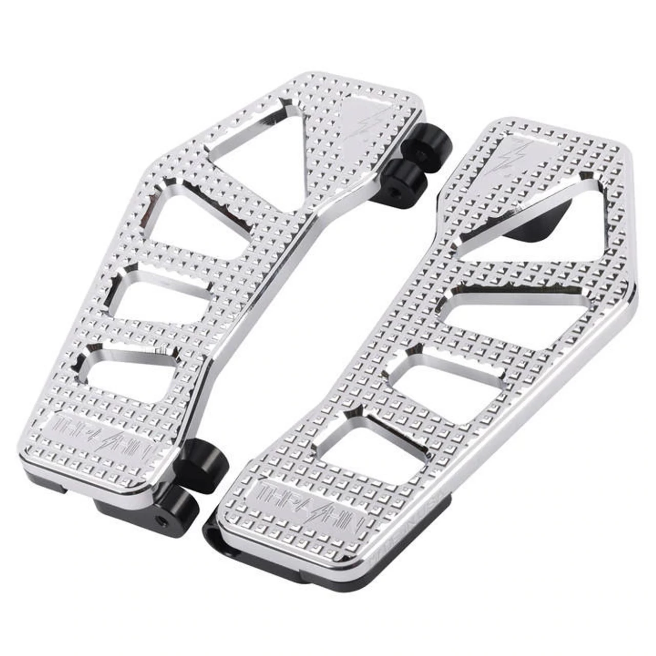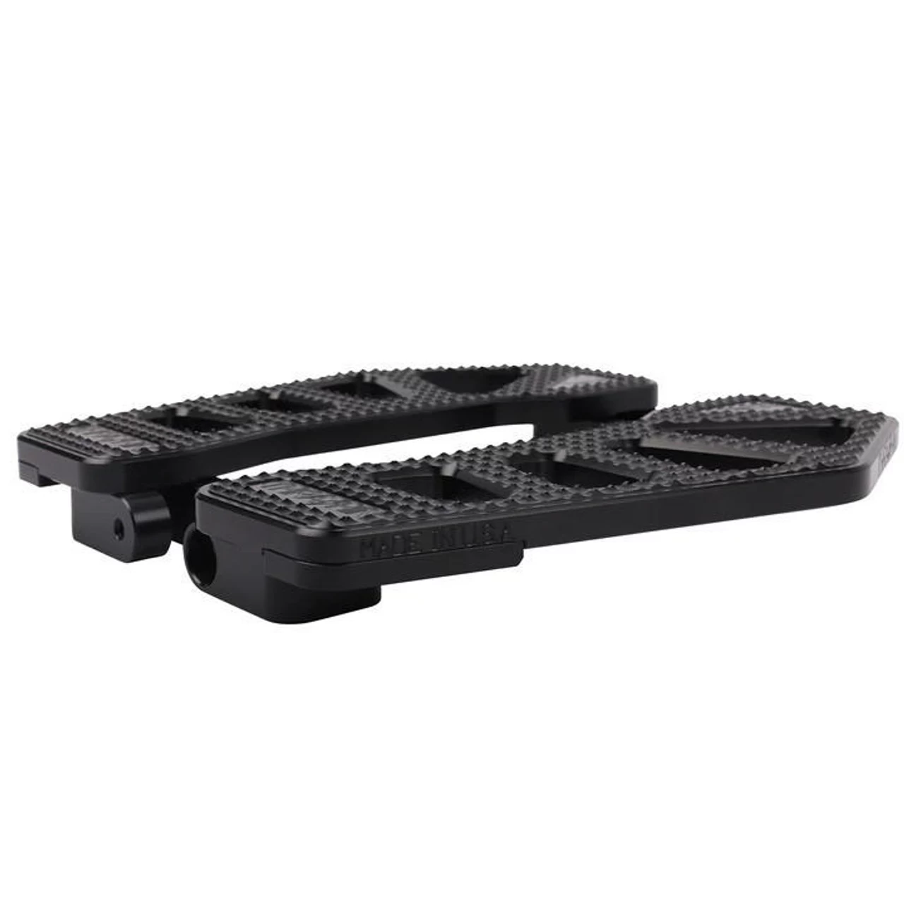The Apex Floorboards were built to deliver the utmost ground clearance, all without giving up the comfort of floorboards on your bike. Thrashin did this by making these boards fit perfectly over the stock HD mounts with a total length of 10″ and only 4.2″ wide at its widest point. These boards also have an optional .5″ lift kit and Tail Extention (sold separately).Â