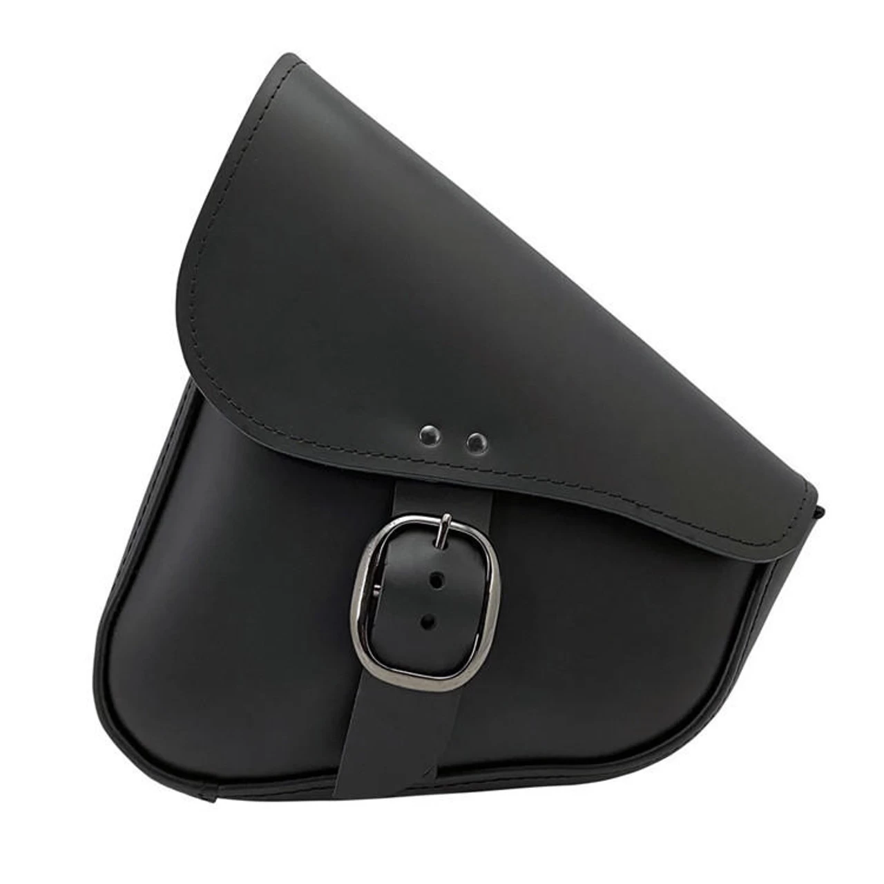 - Durable leather swingarm bag construction uses OEM quality black leather and black chrome buckle with quick disconnect buckle hidden under the strap. Also has magnetic closure.