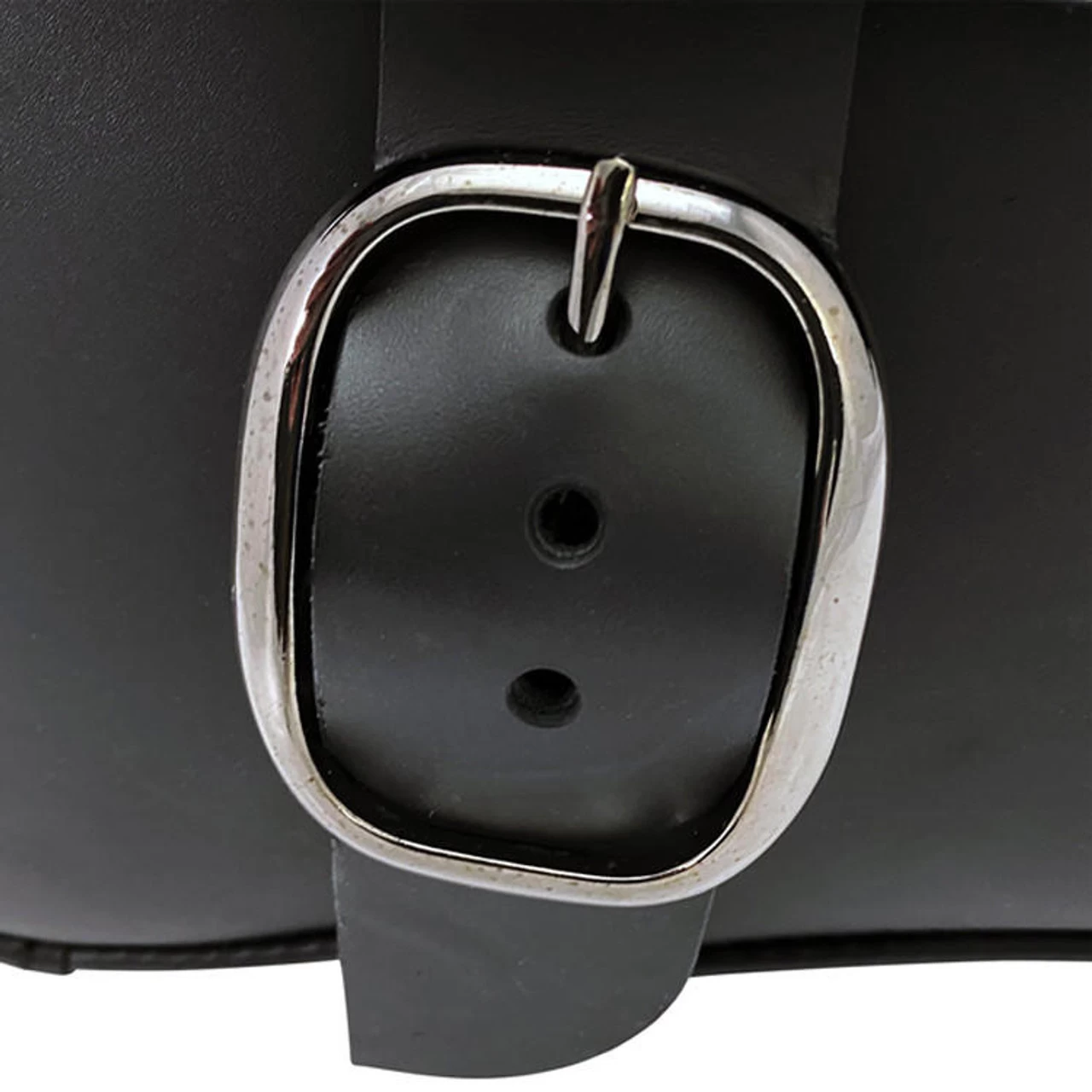 - Includes three leather mounting straps with chrome buckles for simple, secure installation to the motorcycle. Slots are pre-cut in the back of the bag for installation using leather straps.